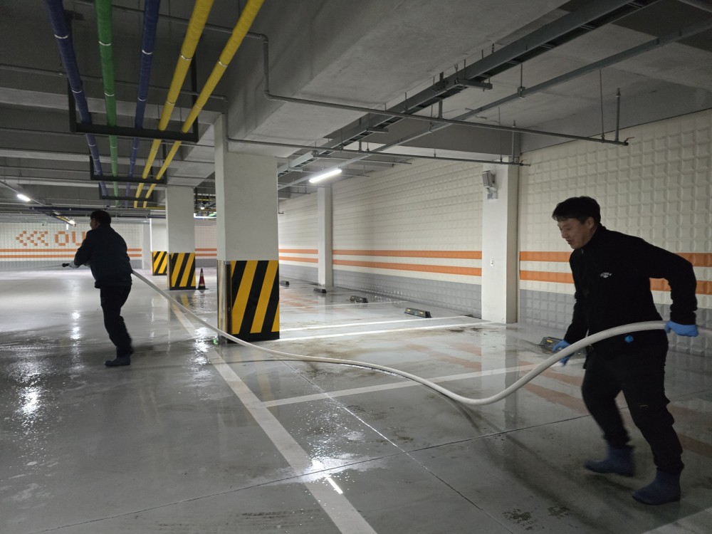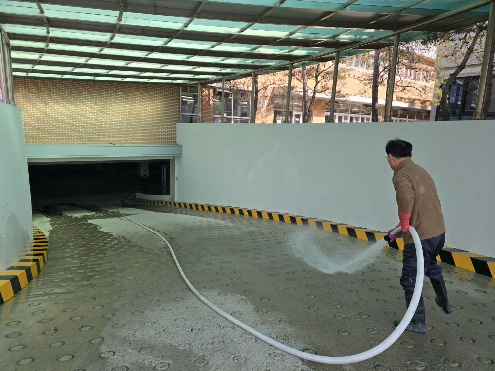 1. 청소 작업: 중학교 출입구 및 지하주차장 청소