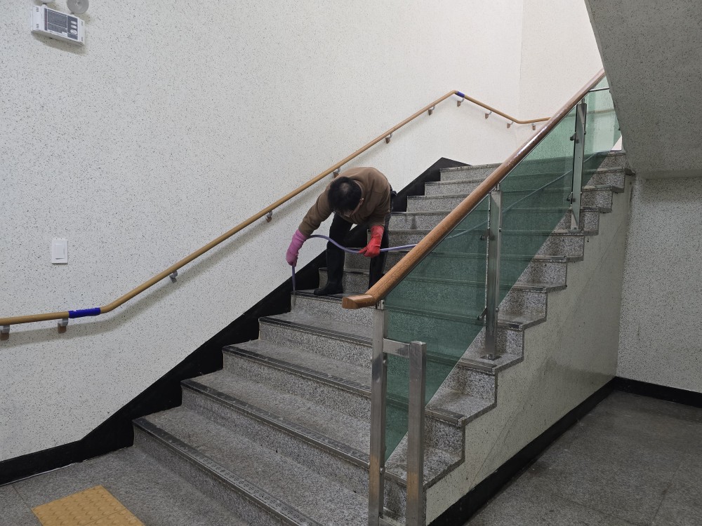 청소 작업 후, 출입구와 이동 통로는 더욱 밝고 쾌적한 모습으로 변했습니다.